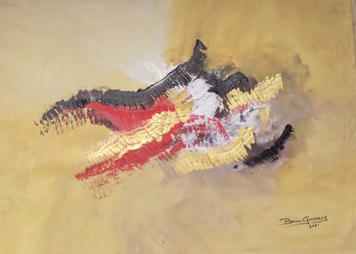 The artist BRUNO GUIMARÃES BY MRS. GLADIZ DE ZAPATA The plastic artist Bruno Guimarães, 60 years old, born in Manaus Amazonas Brazil, had his talent and artistic virtuosity discovered very early on, by his teacher, the Italian master Francesco Cocolice, who encouraged his 10-year-old pupil to make his first exhibition at the Liceo Orellana in Leticia Colombia. While on an exchange program in the United States, at age 12, he had his works exhibited in Melbourne Florida, in a collective exhibition of new talents at the HTS school. Returning to Brazil, at age 14, he attended painting classes with Mestre Moacir de Andrade, in Manaus, where he had his first solo exhibition at Teatro Amazonas. In São Luís do Maranhão, at age 18, he received guidance from artists, Fransoufer, Francisco Lobato, Péricles Rocha and Jesus Santos, soon becoming a colleague and part of this roster of Notorious Artists. With well-defined styles, he left for a brilliant artistic career, full of awards, in art salons in Brazil and Latin America. Its curriculum includes 53 individual and 10 collective exhibitions. A declared disciple of Manabú Mabe, Kenji Fukuda, Tomie Otake among other abstractionists, he chooses this school and its lyrical gestural style to portray feelings with the symbolic language of colors and gestures, where the brush and spatula float free on the canvas, escaping form explicit, giving value to the free, libertarian, poetic gesture that leads us, aided by the chromatic language, to elucidate the artist's expressive proposal. Zapata's Gladiz Art Critic and Owner of the Contemporary Art gallery in Quito Ecuador. HOW TO READ MY ARTWORK To read my work of art, detach yourself from the figure, I do not paint figures, but moments and feelings in colors and gestures, which, with the help of the name of the work, elucidate the proposed theme of what I portray on the canvas. As an Abstractionist Lyrical painter, I also use gestures in spatulate and brush strokes, in a peculiar composition created by me, where the quadrants determine, together with the colors, what is Emotional, Spiritual, Rational and Material, as you will see in the didactic chart below. I use the theory of colors and their meaning according to psychology, their mental and emotional triggers in analogy to human feelings, to express a feeling, a moment in my canvases, I use metaphorical titles that reflect passages, rites and times in human life. My art is subjective and depends on a certain knowledge to understand it. I compare my works with classical instrumental music, where the instruments are the gestures on the screen, the melody, the colors and the composition, and the whole set of work is a score. I hope you enjoy reading my work. Bruno Guimaraes